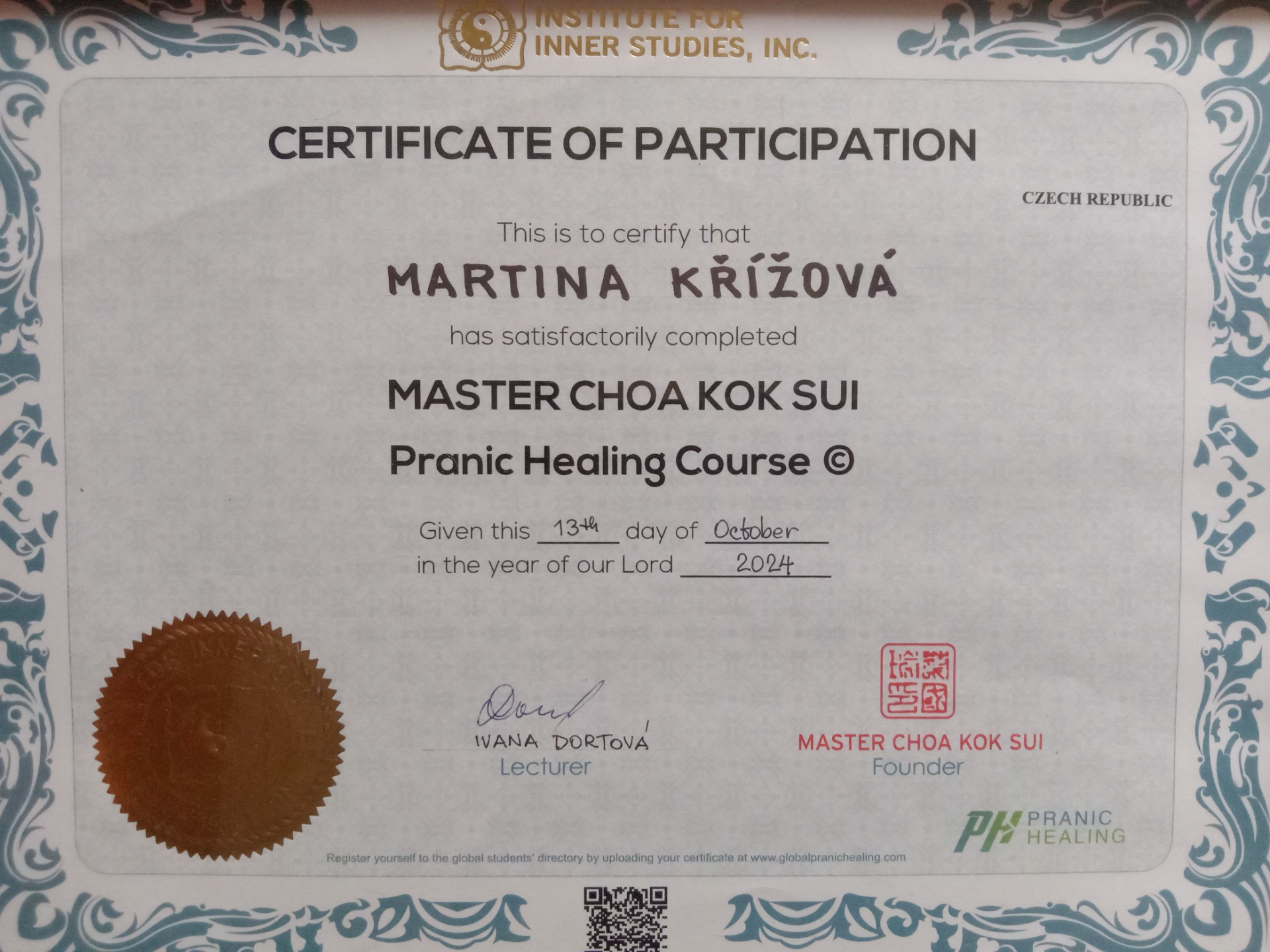 "Pránické léčení není určeno k tomu, aby nahradilo alopatickou medicínu, ale spíše aby ji doplnilo. Pokud příznaky přetrvávají nebo jestli je onemocnění závažné, prosím, vyhledejte lékaře."